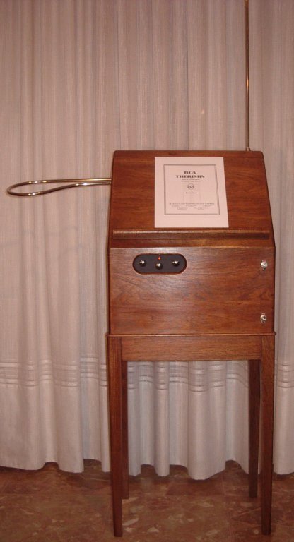 Dapprima valutai l’opportunità di allestire un circuito a transistor copia di quello impiegato nel mio ultimo Theremin. Si tratta di un circuito dall’ottimo suono e sicuramente avrebbe dato una voce adeguata ad un cabinet così affascinante, ma non lo ritenni sufficiente: il cabinet è “importante”, una replica RCA, occorre una elettronica altrettanto importante, ovvero una elettronica a valvole, era l’ora di rispolverare l’idea del nuovo circuito a valvole.